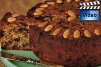 A delicious cake full of grated carrot, chopped nuts, dried coconut, and